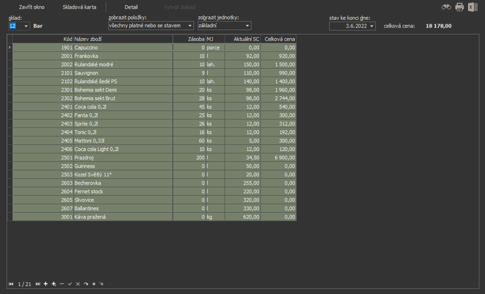 Číselník Aktuálních stavů skladů naleznete ve SmartPOS Manažerovi ve Sklady -> Aktuální stavy skladů (nebo klávesou F5)