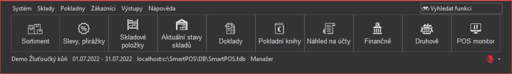 V Manažerovi můžete vytvářet skladové doklady a lze v něm generovat statistiky prodeje a grafy (např. Porovnání jednotlivých směn nebo Neprodávanější sortiment).
