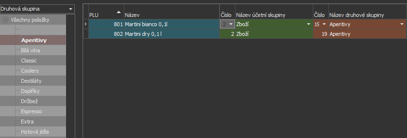 A nyní již vydíme pouze položky, které do těchto skupin spadají.