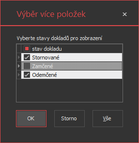 Následně si můžete vybrat v jakém stavu mají být doklady, které chcete zobrazit.