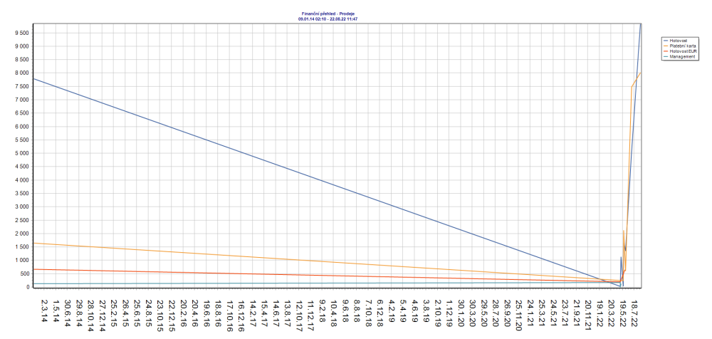 Pokud je zakoupena licence pro práci s grafy, SmartPOS umožňuje pro druhové a finanční položky namarkovaných účtenek generovat grafy. Grafy lze obdobně jako tiskové sestavy konfigurovat pomocí průvodce.
