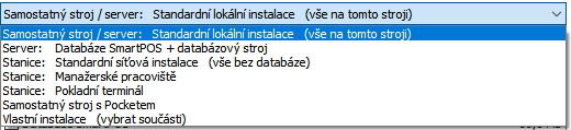 V rozbalovací nabídce lze zvolit typ instalace, případně přímo vybírat konkrétní součásti balíčku SmartPOS.