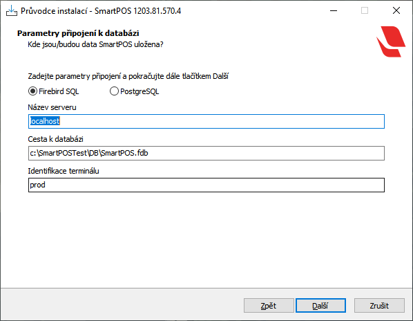 Pozor! Instalátor podporuje doinstalování podpory pro SmartPOS do Firebirdu již nainstalovaného třetí stranou, ovšem pouze v případě, že se jedná o Firebird 2.5. a heslo správce Firebirdu je buď standardní “masterkey”, nebo používané SmartPOSem. V ostatních případech se prosím spojte s naší zákaznickou podporou.
