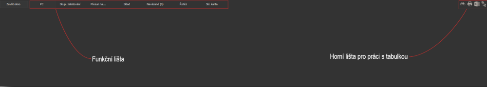 Nad číselníkem nalezneme funkční lištu a lištu pro práci s tabulkou.