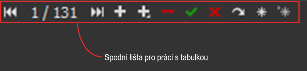 Pod číselníkem”:https://manual.smartpos.cz/1/cz/topic/terminologie se nachází spodní lišta pro práci s tabulkou, která slouží k navigaci a práci s položkou (přidání, odstranění, atp.).