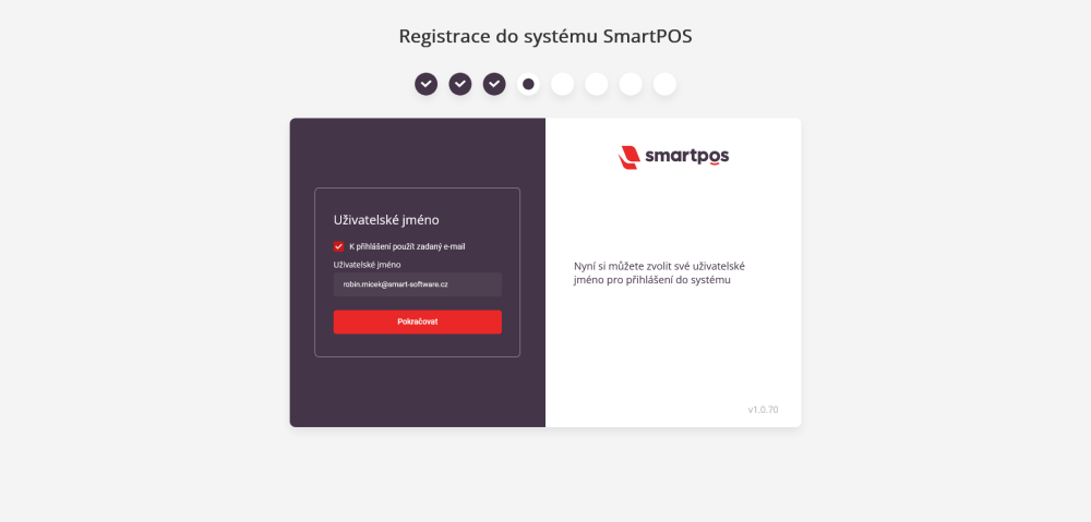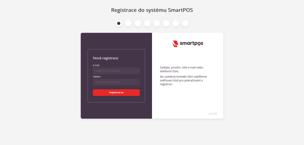 Pro registraci do aplikace Můj SmartPOS nejprve přejděte na stránku muj.smartpos.cz/#/registration