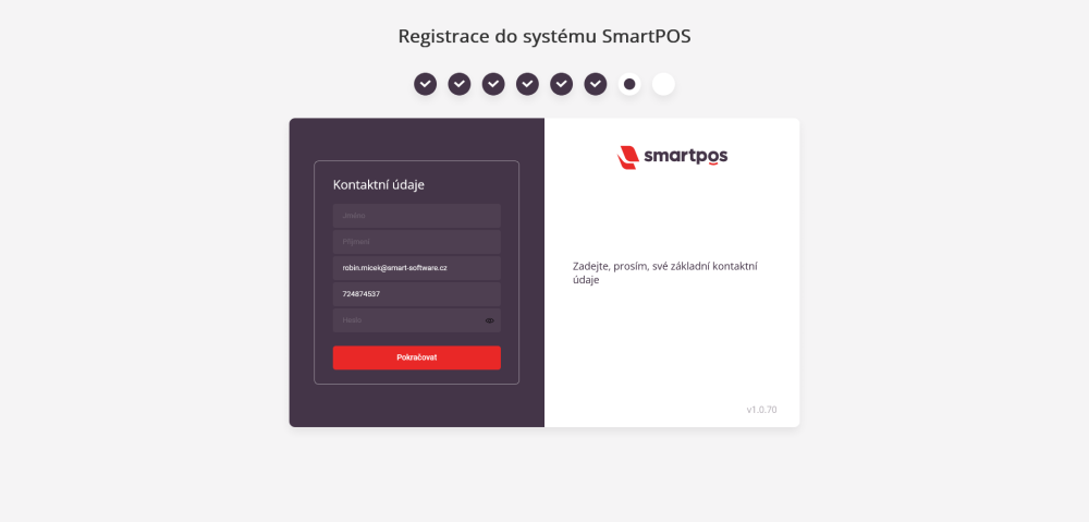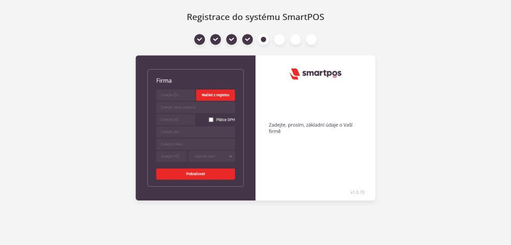 Poté bude následovat několik kroků, ve kterých budete vyzváni k zadání základních informací o Vás a Vaší firmě.