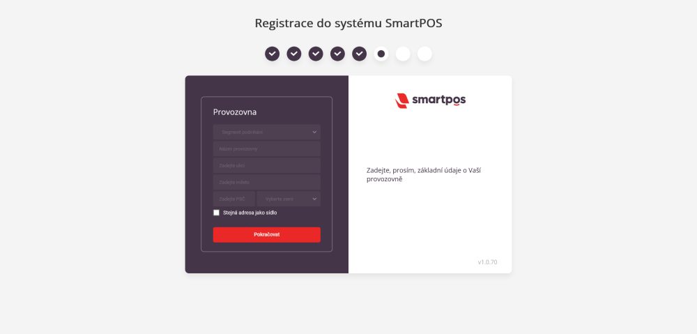 6. Následně zadejte údaje o Vaší první provozovně (pokud máte provozoven více, budete si je moci přidat jakmile dokončíte registraci)