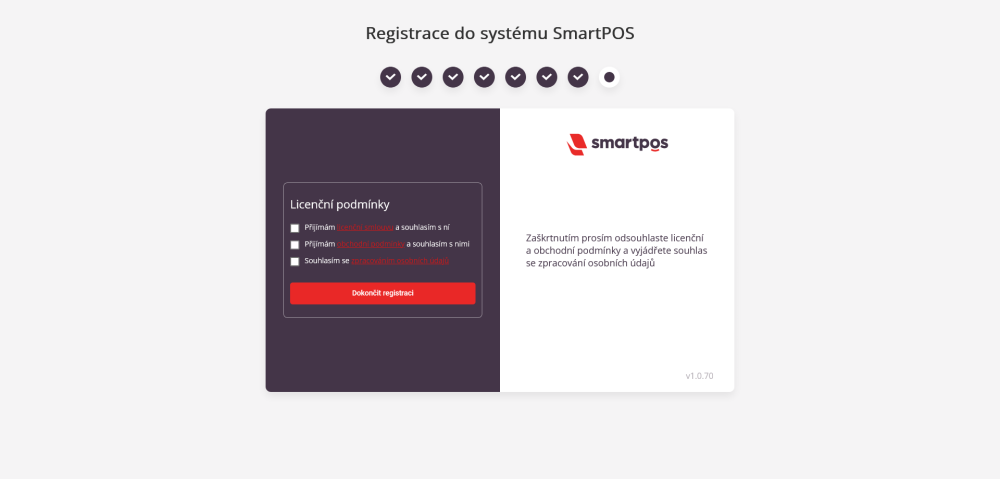 8. Odsouhlaste licenční a obchodní podmínky a souhlas se zpracováním osobních údajů. Poté klikněte na tlačítko Dokončit registraci.
