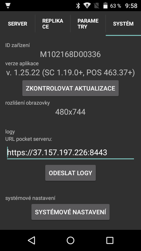 Obrazovku Vaší restaurace si navrhnete v návrháři obrazovek, v manažerovi SmartPOS dle kapitoly Obrazovky. Při vytváření obrazovky, je důležité, dbát na rozlišení Pocketu. Rozlišení Pocketu lze zjistit v Administraci, v záložce systém. V Poli rozlišení obrazovky.