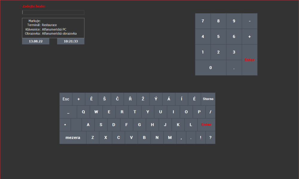 - Zadání hesla na dotykové obrazovce