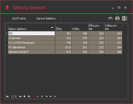 Pro definici nové klávesnice je třeba nejdříve nadefinovat šablonu fyzické klávesnice, která bude používána na prodejním místě.