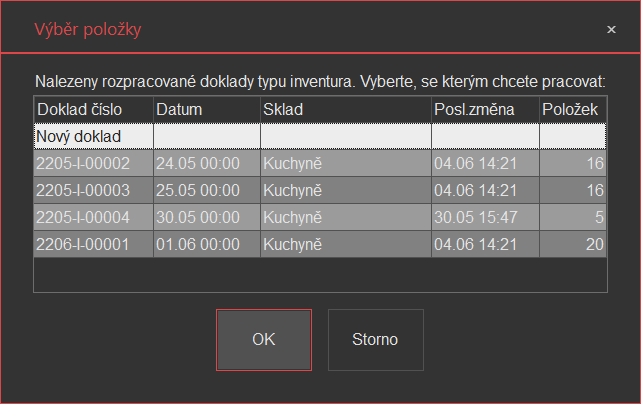 zobrazí se vám okno, ve kterém si vyberete, zda chcete vytvořit nový doklad, nebo upravit existující.