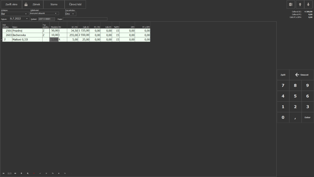 Po stisknutí na vás vyjede okno pro vytvoření dokladu, pracuje se s ním stejně, jako když vytváříme doklad ve SmartPOS Manažerovi.