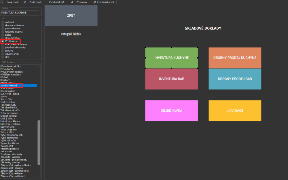 - Zvolte typ tlačítka POS Funkce a následně Skladový doklad