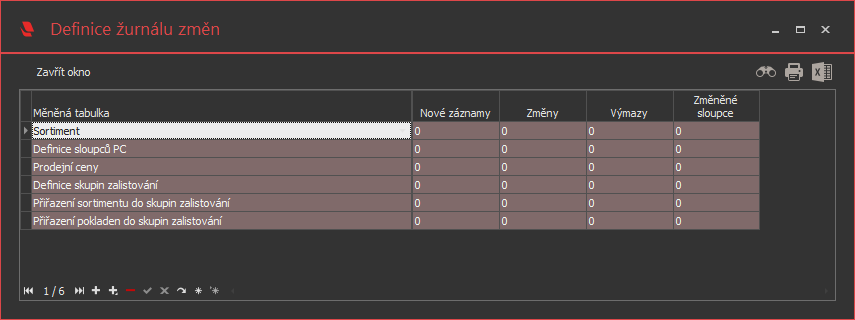 Dále je nutné nastavit parametry v nabídce Systém -> Servis -> Definice žurnálu změn.