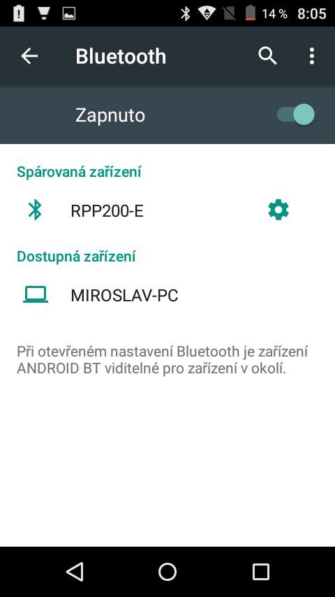 - Výběr tiskárny vyberete stejný název jako jste viděl při nastavování bluetooth