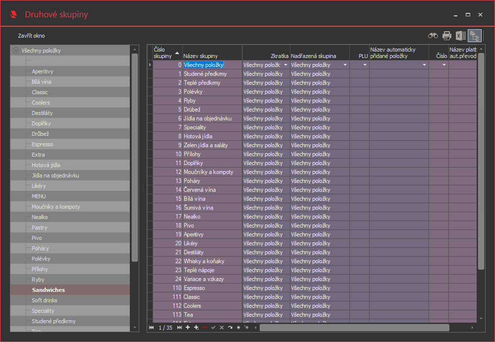 Několik číselníků v aplikaci vytváří stromovou strukturu, tedy některé prvky jsou nadřazeny jiným. Jde především o různé třídění do skupin, jako jsou například Druhové skupiny, Účetní skupiny, Uživatelské skupiny (ale například i Lokality).