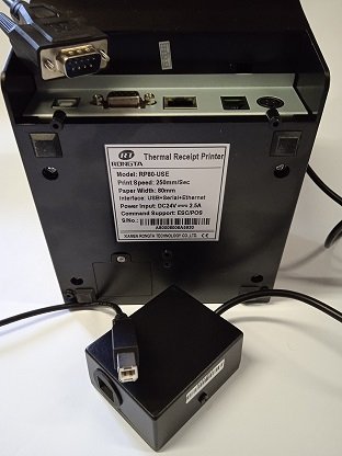Zákazník na Slovensku potřebuje evidovat účtenky přes zařízení CHDU, které je připojeno k tiskárně přes RS232 a USB kabelem k tiskárně.
