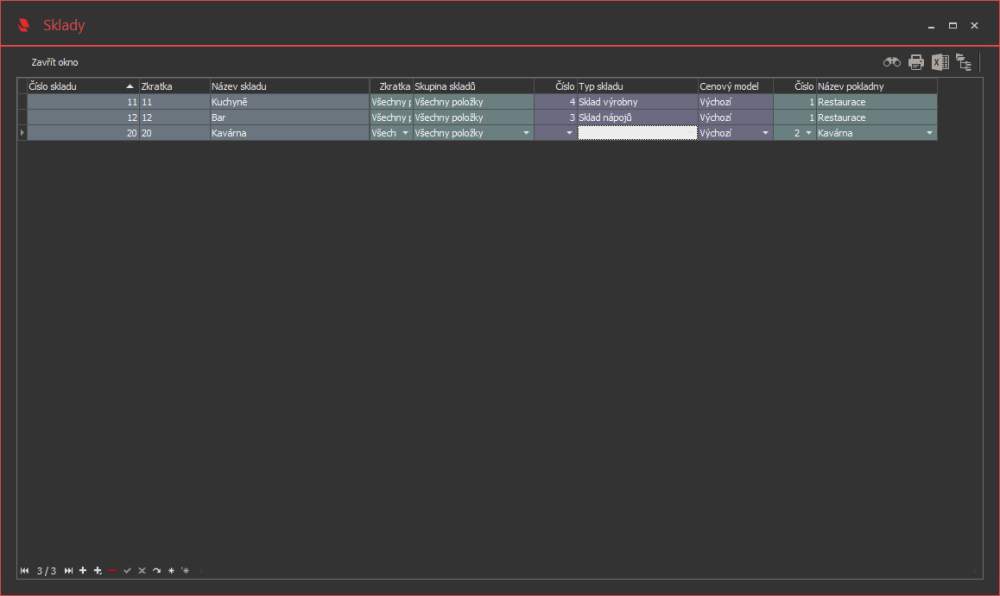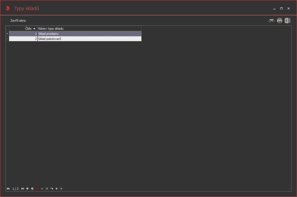 Pro větší přehlednost si můžeme sklady rozdělit na jednotlivé typy.