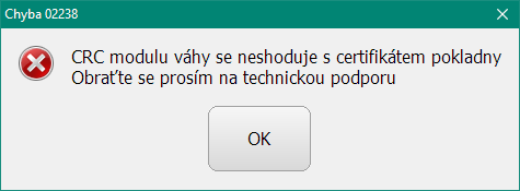 Pokud je knihovna Smart Scale Library porušena, zobrazí se hlášení s upozorněním a váhu není možné používat. V takovém případě se, prosím, obraťte na naši technickou podporu.