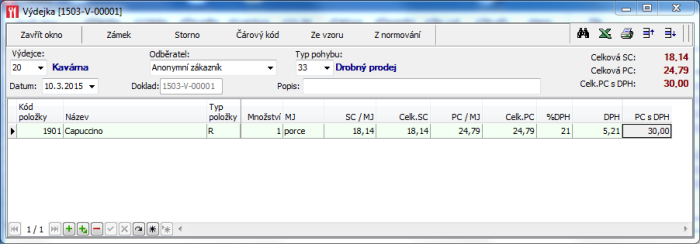 Pomocí dokladu Výdejka (vytvoření z okna dokladů pomocí tlačítka +Výdejka nebo klávesou V) lze ze skladu vydat položky bez prodejního dokladu. Tento typ dokladu se používá např. při odpisu zkaženého nebo rozbitého zboží. V hlavičce je zadán sklad, ze kterého se vydává, druh pohybu (odkaz do číselníku) a datum výdeje. Položky výdejky (skladové položky) lze zadat obdobně jako do faktury pomocí tlačítka