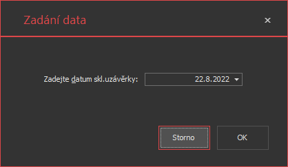 V následně zobrazeném okně vybereme datum, ke kterému uzávěrku provádíme. Do uzávěrky budou zahrnuty skladové pohyby až do tohoto data včetně.